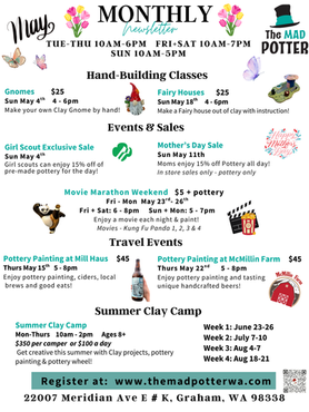 Walk ins are welcomed during our open hours for painting premade pottery.