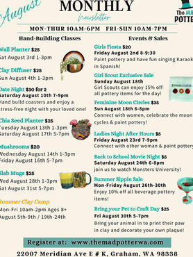 Booking is required for pottery wheel use and instruction clay classes, events, or parties.
